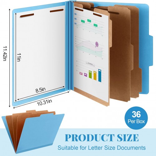 36 Pcs Classification Folders Letter Size, 3 Divider Pressboard File Folder with Fasteners, Expanding File Organizer Bulk for Teachers, Clergy, Office, Church, Christmas Donations (Blue)