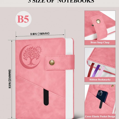 - 【CONVENIENT FEATURES FOR ORGANIZATION】:The leather journal includes 3 ribbon bookmarks, allowing you to easily mark important pages or sections. The 180° lay-flat design ensures that the notebook lies flat on any surface, making it comfortable to write in for extended periods. The metal snap closure design keeps the notebook securely closed, protecting your notes from damage.These features make the notebook a versatile tool for various settings, from work and school to personal use.