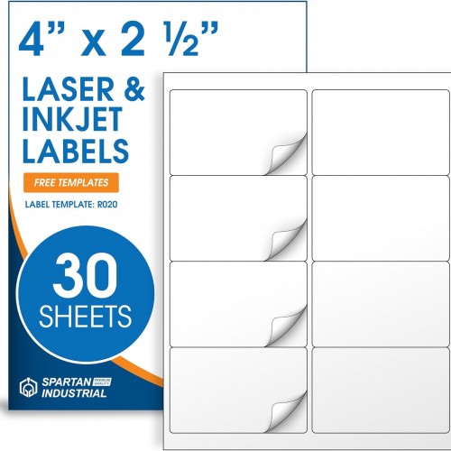 4″ X 2 1/2″ Printable Shipping Address Labels Compatible with Inkjet and Laser Printers – 250 Sheets, 2000 Total Matte White Paper Stickers for Mailing Packages and Envelopes – Spartan Industrial