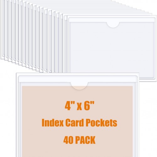 40 PCS Index Card Pockets 4″X6″, Self Adhesive Card Pockets, Clear Label Pockets for Storage Bins, Plastic Labels Holders for Organizing, Loading, Drawer,Library Card, Totes, Shelves (4″X6″)