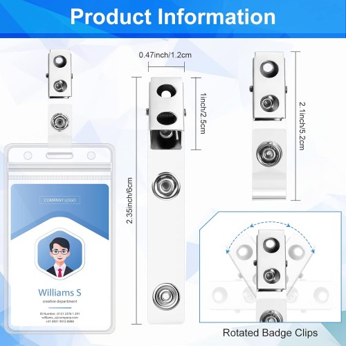 400 Pack Metal Badge Clips with Clear PVC Straps Double Hole ID Badge Clips for Name Tag ID Cards and Badge Holders, Office Supplies