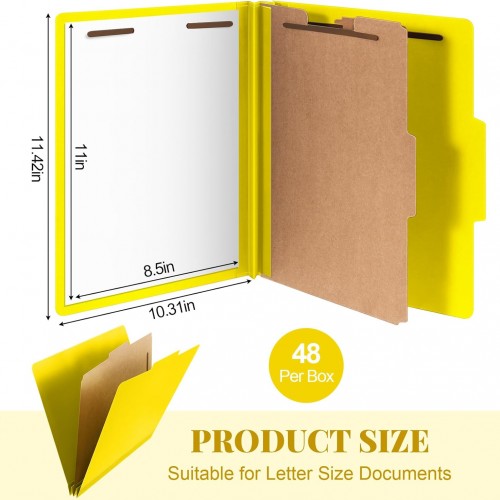 48 Pcs Classification Folders Letter Size, 1 Divider Pressboard File Folder with Fasteners, Expanding File Organizer Bulk for Teachers, Clergy, Office, Church, Christmas Donations (Yellow)