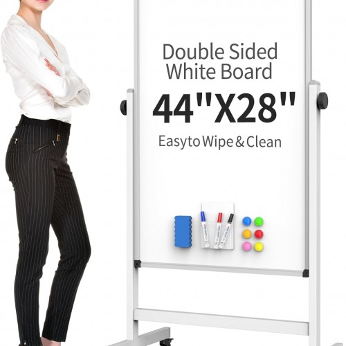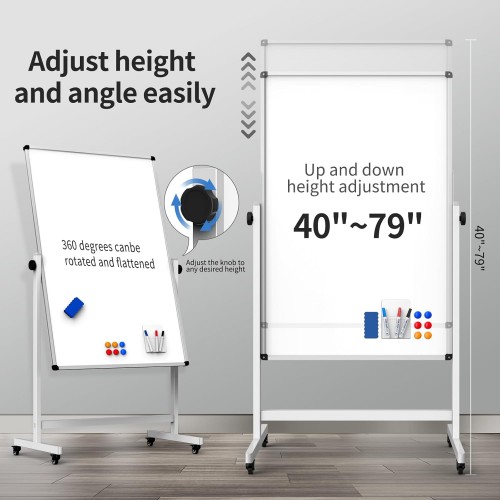 48x32inches Mobile Whiteboard – Adjustable Height, Standing Whiteboard on Wheels, Double-Sided Magnetic Dry Erase Board for Office, Home, Classroom