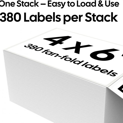 - 380 labels per Stack, 4×6 Direct Thermal Shipping Labels – Fan-Folded. Each pack includes 380 fan-folded 4×6 direct thermal labels,for bulk shipping tasks. These thermal shipping labels (4×6) are compatible with popular thermal label printers