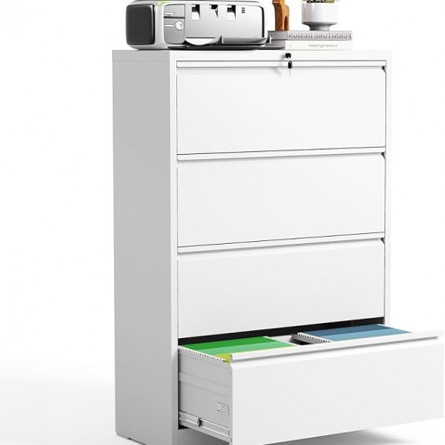 5 Drawer Lateral File Cabinet with Lock, Black Metal Lateral Filing Cabinet for Home Office, Steel Wide Filing Cabinets for Letter/Legal/A4/F4 Hanging File Folders (Black)