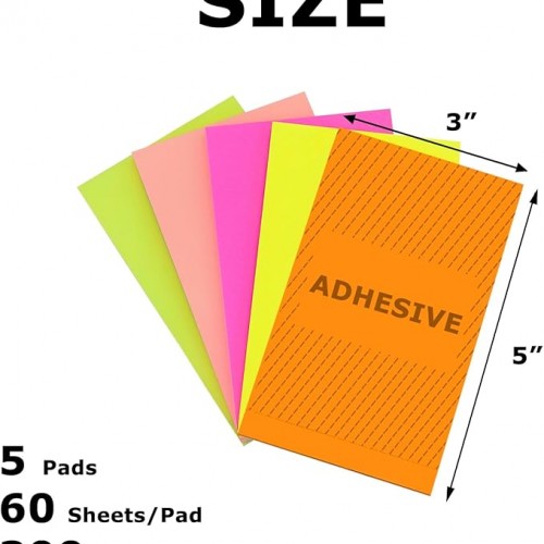 5 Pads Full Adhesive Sticky Notes 3 x 5 in, 5 Bright Colored Sticky Notes Full Adhesive Back for Home Office School Supplies, 60 Sheets/Pad, 300 Sheets Total, 4A 305-Full Adhesive-300