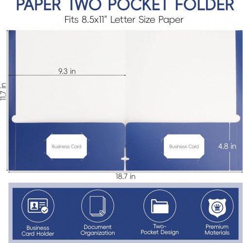 50 Pack Folders with Pockets, Pocket Folders Fit Letter Size Paper, with Business Card Slot, 2-Pocket Folder for School Office Home Business