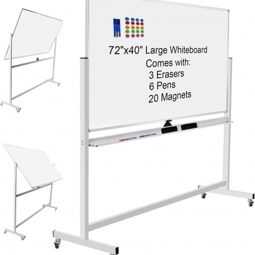 60″x40″ Mobile Whiteboard Double-Sided Magnetic Large Dry Erase White Board with Rolling Stand for Offices, Home & School