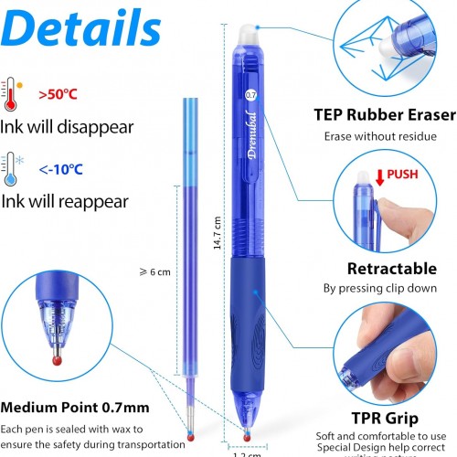 - Exceptional Writing Experience: The erasable gel pens are equipped with a 0.7mm pen core, ensuring smooth and clear writing, making them perfect for both daily notes and important documents.