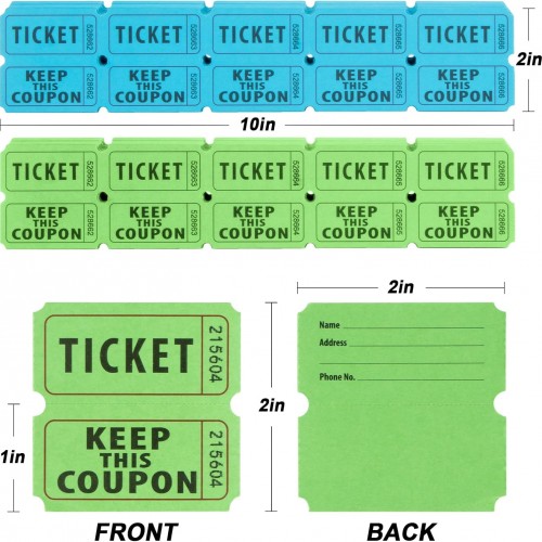 800PCS Double Roll Raffle Tickets 50/50 Raffle Tickets Perforated Line Consecutive Numbers Tearable Writable Suitable for Raffles, Events, Carnivals, Entry, Lottery, Prizes