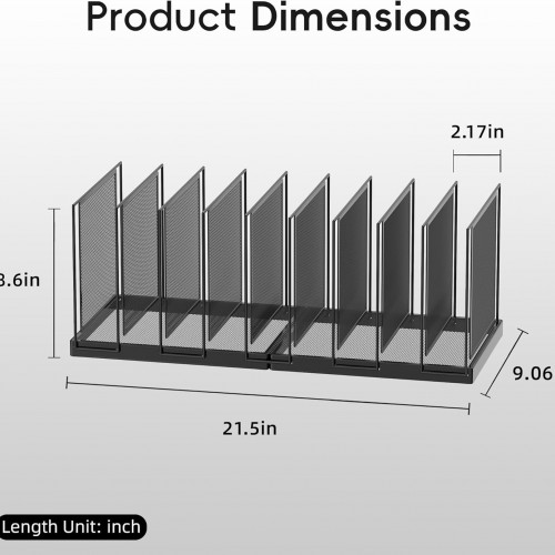 - [9 File Compartments] Our 9-section file folder organizer provides more storage space for files, books, mails, paper and magazines. 9 vertical sorters can hold your documents and laptop upright, allowing you to easily keep workspace tidy and organized.
