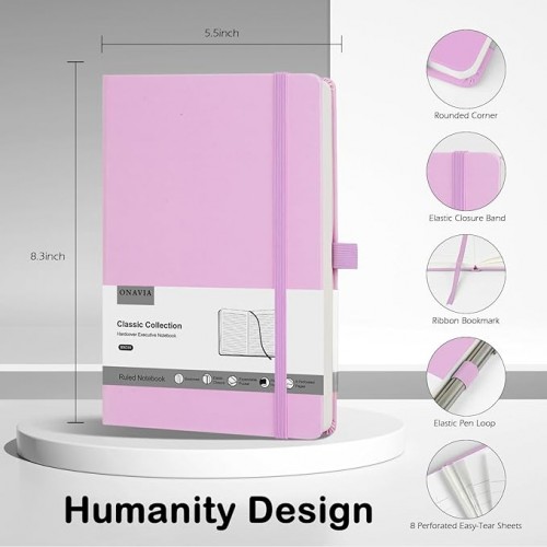 - 【NOTEBOOKS WITH ALL THE FEATURES】Built in ribbon bookmark, an elastic closure to hold down pages or front cover to keep the journal closed, Pen Holder, 180°lays flat when opened which makes it easy to write in, Vegan leather Hardcover