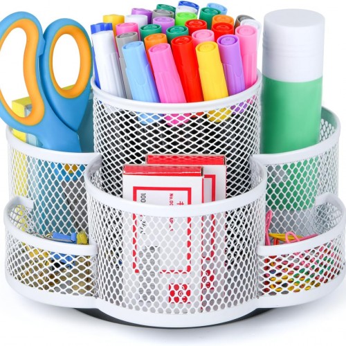 - 360 Degree Rotating Pencil Holder – This marker caddy with 360 degree rotating designed, which can help organize the items on the desktop. The rotating pencil holder can easily turn to each compartment and organize your items by type. Keep everything organized and at your fingertips