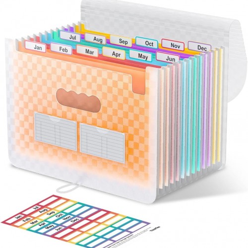 Accordion File Organizer – 12 Pocket Expanding File Folder with Zipper & Labels – Fireproof File Folder Organizer with Multi-Pockets,Document Organizer for Letter A4 Files and More