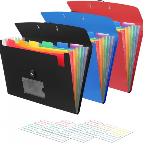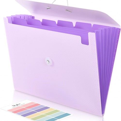 Accordion File Organizer, 7 Pockets Expanding File Folder with Labels, A4/Letter Size Portable Folders for Documents, Paper Organizer for School Office Supplies, Purple