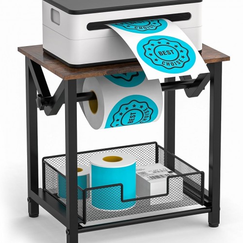 - Multi-functional Label Holders: Designed with functionality in mind, our label roll holder can store printers on top and rolls of labels and folded labels underneath. It not only saves space, but also ensures that your labels are neatly organized and easily accessible. Two extra wiring holes help you organize the wires and can be pasted as needed