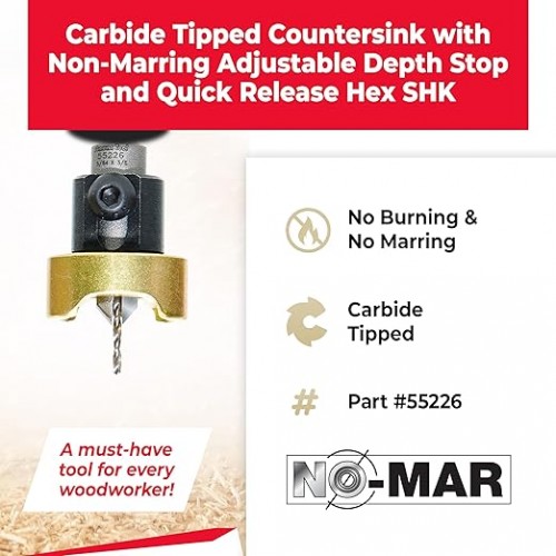 Amana Tool 82 Degree Countersink with Drill Bit Depth Stop and No-Thrust Ball Bearing, 55226, 3/8 D x 3/32 Drill D x 1/4 Inch Quick Release Hex Shank