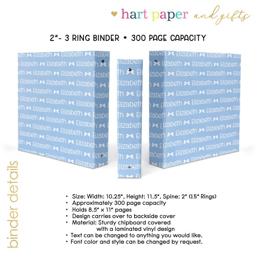ANY COLOR Coquette Bow Repeat Name Personalized Custom 2″ 3 Ring Binder • School Office Supplies