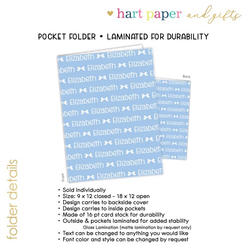 ANY COLOR Coquette Bow Repeat Name Personalized Custom 2-Pocket Folder • School Office Supplies 1 – 2Pocket Folder