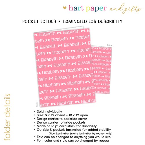 ANY COLOR Coquette Bow Repeat Name Personalized Custom 2-Pocket Folder • School Office Supplies 1 – 2Pocket Folder