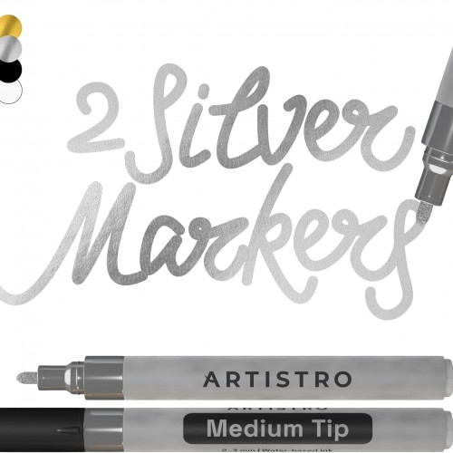 - PREMIUM QUALITY: This Artistro 2-pack of Jumbo Silver acrylic paint pens utilizes vivid, acrylic ink that dries quickly to produce a durable opaque and glossy finish on any surface. Each acrylic paint pen is equipped with Italian ink and a durable Japanese nib.
