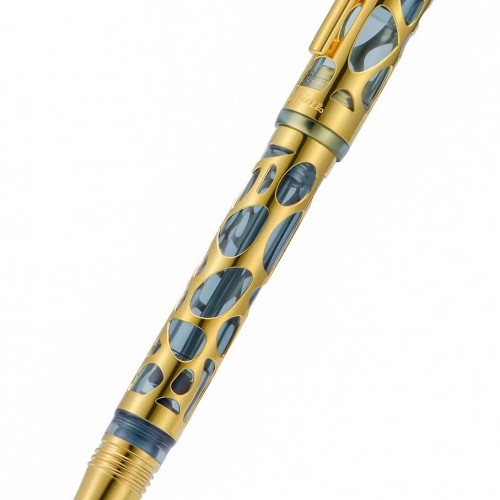 Asvine V169 Vacuum Filling Fountain Pen Fine Nib, Water Drop Skeleton Gold Trim Transparent Gray Blue Acrylic Pen Case Set