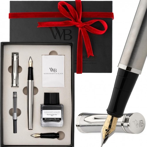 Asvine V169 Vacuum Filling Fountain Pen, Matte Black Water Drop Skeleton Transparent Acrylic Pen, Black Medium Nib Office Pen with Case Set