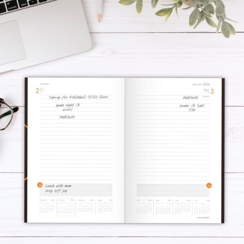 - DAILY VIEWS – One day per page features ruled planning sections with HOT Spot reminders to track important details. Reference calendars are shown across the bottom for quick date checking. Pages measure 5″ x 8.25″.