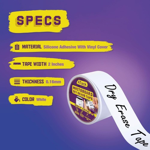 - PERFECT DRY ERASE LABEL TAPE FOR CLASSROOMS. The ATack Whiteboard Dry Erase Tape Roll is a residue-free dry erase board tape that resists smudging and is compatible with all dry erase markers. It is perfect as a dry erase label for storage bins and shelves and a teacher’s companion for sentence strips and word bubbles for Guided Reading lessons.