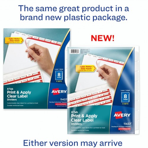 - Get a professional, printed-on look with clear labels that virtually disappear on the white divider tabs