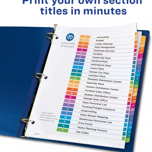 Avery A-Z Tab Dividers for 3 Ring Binder, Customizable Table of Contents, Multicolor, 1 Set (11125)