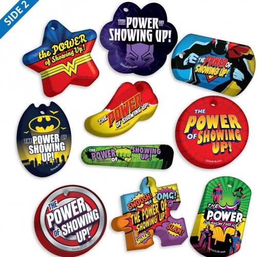 Awesome Attendance Heroes Brag Tag Value Pack to Improve Students’ School & Classroom Attendance: 500 Tags (50 Tags for Each Design) + 150 USA-Made 24″ Hypoallergenic Aluminum Safety Chains