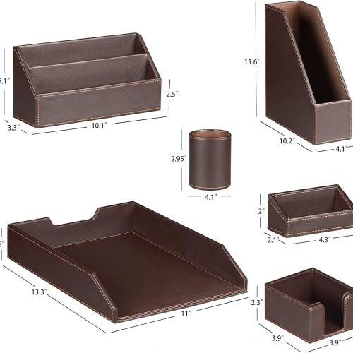 Ayunga PU Leather 6-piece Office Supplies Combination Set,Pencil Cup,Business Card Holder,Sticky Note Dispenser,Mail Sorter,Letter Tray,Files Holder,Suitable for Self-use and Friend Gifts (Brown)