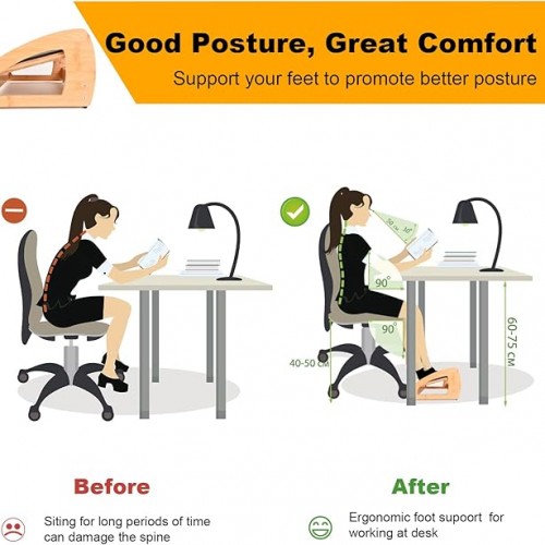 - 4 HEIGHT ADJUSTABLE – This ergonomic under desk footrest has four heights, which can be adjusted freely according to the height of the table and chair or your height. Desk foot rest can help relieve shoulder, back and leg pain, relieve pressure on the spine and legs, improve sitting posture, and promote blood circulation in the legs