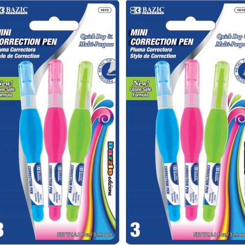 BAZIC Correction Pen (0.1 oz / 3 ml), Precise Metal Tip Applicator, Fine Point Corrections Fluid, White Out Liquid (3/Pack), 144-Packs