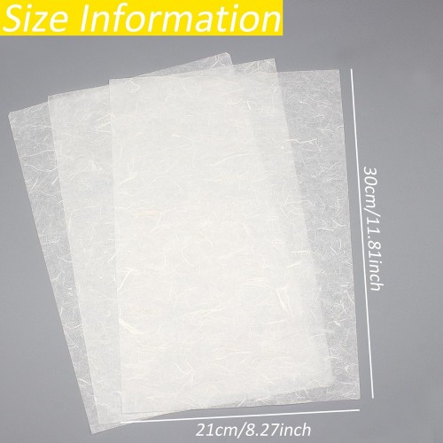Benvo 50 Sheets A4 Natural Mulberry Paper Visible Plant Fibers Rice Paper Printable Decoupage Tissue Paper Sheets for Writing, Painting, Card Making, DIY Crafts(8.3×11.7in, Semi Transparent Off White)