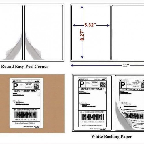 - Label size: 8.27” x 5.32”, sheet size: 8-1/2″ x 11″ , US letter size.