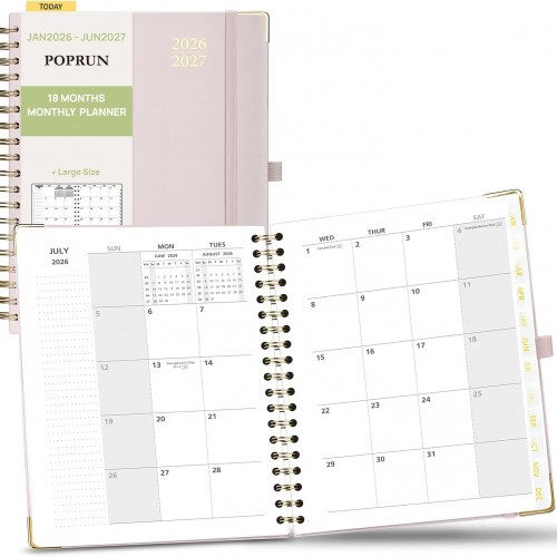 BEZEND Weekly Planner 2025-2026 with 2 Columns, 5.8″ x 8.5″ Academic Calendar 18 Months (Jul 25-Dec 26) Life Work Appointment Book with Monthly Tab, PU Leather Softcover Spiral – Mustard