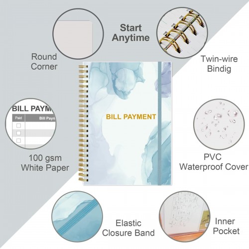 - HIGH QUALITY – The bill payment tracker spiral notebook size of 5.8″ x 8.5″, just the perfectly size to fit in your backpack, purse or laptop case. Bill payment tracker monthly organizer is used to high quality 100gsm pure white paper, elastic band and a back pocket for extra space. it comes with 3680 entry lines (29 lines per page), make sure you have enough space to take control of your finances.