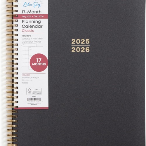 Blue Sky 17 Month 2025-2026 Weekly and Monthly Academic Year Planner Calendar, August 2025 – December 2026, 8.5″ x 11″, Flexible Cover, Wirebound, Laminated Tabs, Dusty Rose