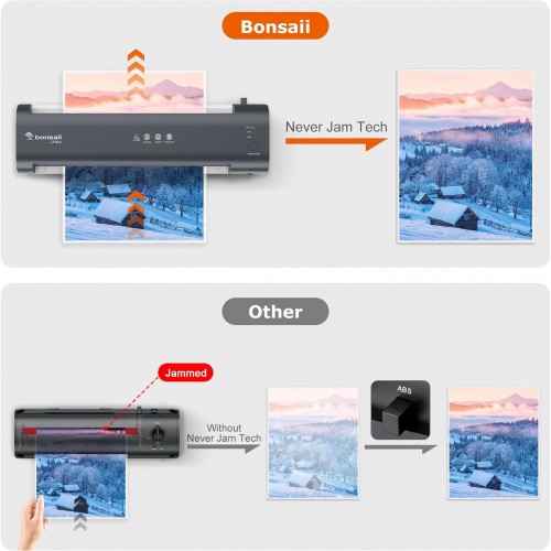 - 【100% Never Jam】Paper jams during laminating process can hinder efficiency and damage your documents. Discover the latest model from Bonsaii. The Bonsaii laminate machines, equipped with exclusive anti-jam technology that reliably prevents jams, safeguards your items, and ensures superior performance.