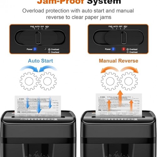 - Easy Operation & Safe Protection: Auto start/stop and manual-forward/reverse function protect the home paper shredder from the frustration of paper jams. Overheat protection helps you use paper shredder without worrying and prolong its lifetime