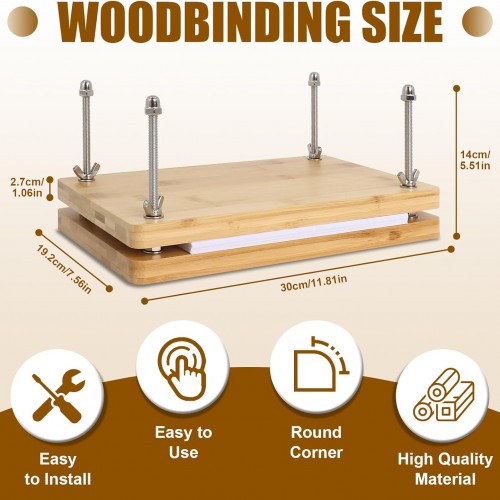 Book Binding Kits for Beginners, 7.9”x11.6” Inch Wooden Book Press, Bookbinding Kit Bookbinding Tools with Bone Folder, Awl, brush, Cloth, Needles for DIY Bookbinding, BookRepair, Handmade Crafts