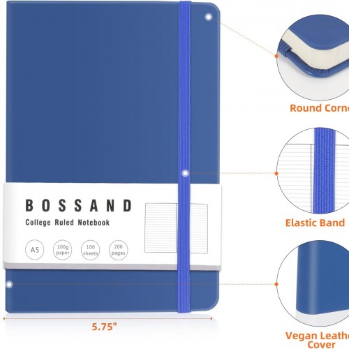 - HARDCOVER EXECUTIVE NOTEBOOK – Perfect size: 5.75″ x 8.25″, the notebooks college ruled features durable and water-resistant vegan leather cover, expandable pocket, ribbon bookmark and elastic closure band, offers durability and functionality.