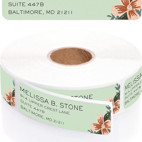 Botanical Flowers Rolled Address Labels/Roll of 250 Alternating Earth Tone Floral Illustrations Personalized Address Labels/Designer Return Address Stickers in Elegant Plastic Dispenser