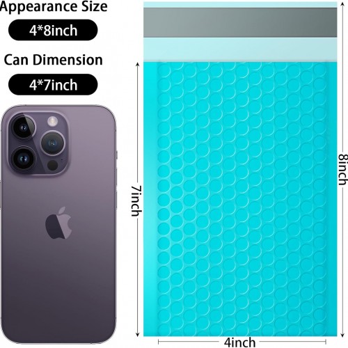 - <b>✨【Bubble Mailers Size】<b> Exterior Size: 4 x 8 inch. Usable size: 4 x 7 inch. our mailer envelopes are lined with unique air cellular layers and 360°strong air bubble technology, which can help absorb shock during shipment and provide effective shipping protection for your products.<br>