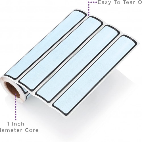 Carstens Adhesive Sticker Labels, 5 3/8” x 1”, Binder Labels for 1” Ring Binder Spines, Sky Blue, Roll of 200