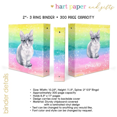 Cat Animals Personalized Custom 2″ 3 Ring Binder • School Office Supplies