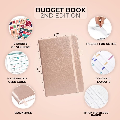 - PORTABLE FORMAT & COLORFUL LAYOUTS – Measuring 5.3 by 7.7 inches, this paycheck bill tracker planner features colorful pages, eco-leather hardcover, 120gsm paper, pen loop, ribbon bookmark, pocket for receipts, budgeting stickers, and user guide.