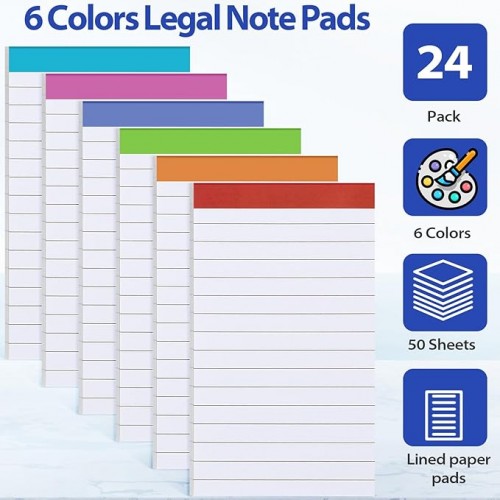 Colarr 24 Pack Legal Pads 3 x 5 Inches Lined Notepads 50 Sheets Wide Ruled Writing Pads for School College Office Business
